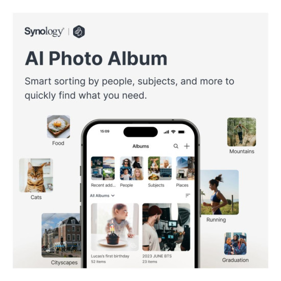 BeeStation automatically backs up your mobile photos at up to 2.6x faster speeds, while its AI engine makes finding specific people or events incredibly easy.