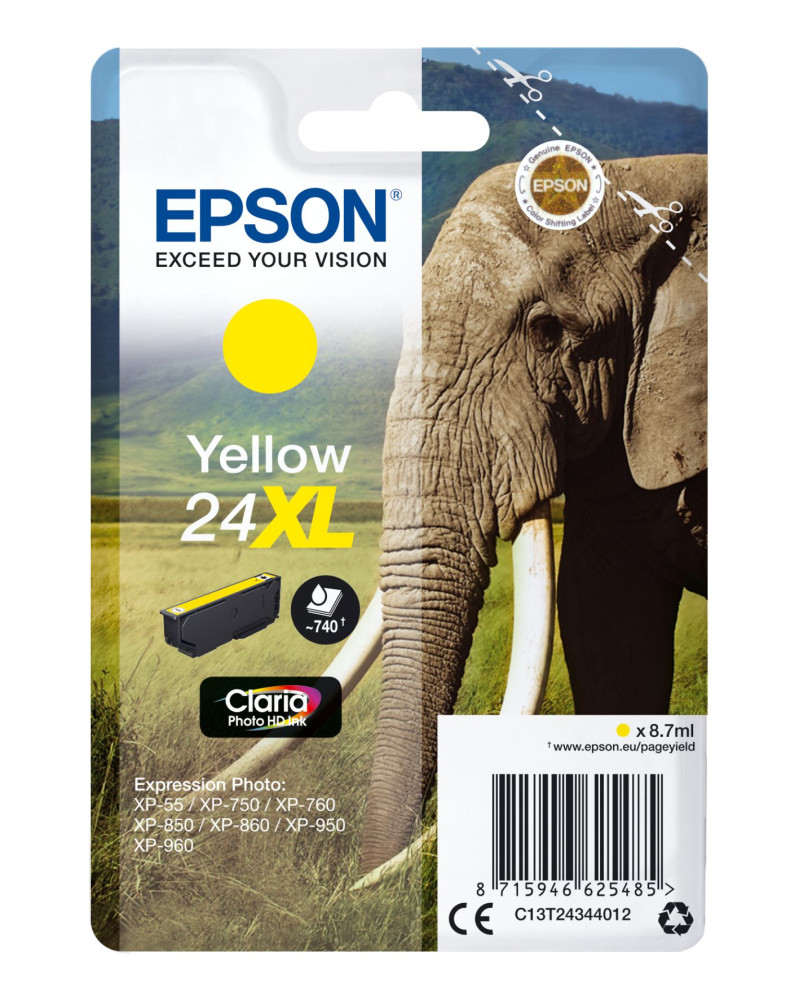 Genuine Epson 24XL Yellow Ink Cartridge 500 Pages 7-8ml for Expression Home XP-55