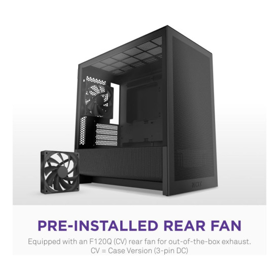 Pre-Installed Rear Fan: Includes one F120Q (CV) fan at the rear to provide efficient exhaust airflow straight out of the box. CV = Case Version (3-pin DC)