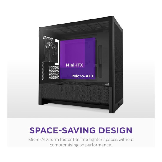 Space-Saving Size: A space-efficient micro-ATX chassis that accommodates high-performance components without compromise.