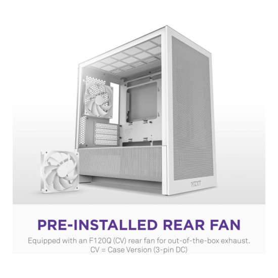 Pre-Installed Rear Fan: Includes one F120Q (CV) fan at the rear to provide efficient exhaust airflow straight out of the box. CV = Case Version (3-pin DC)