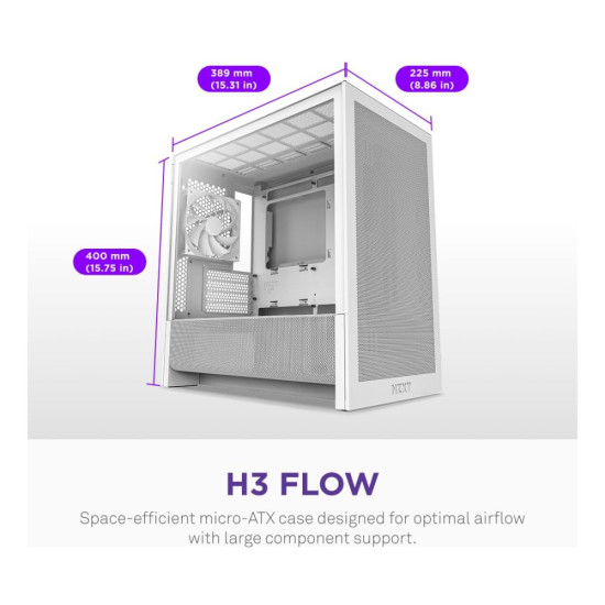 NZXT H3 Flow Tempered Glass Micro-ATX Gaming PC Case White