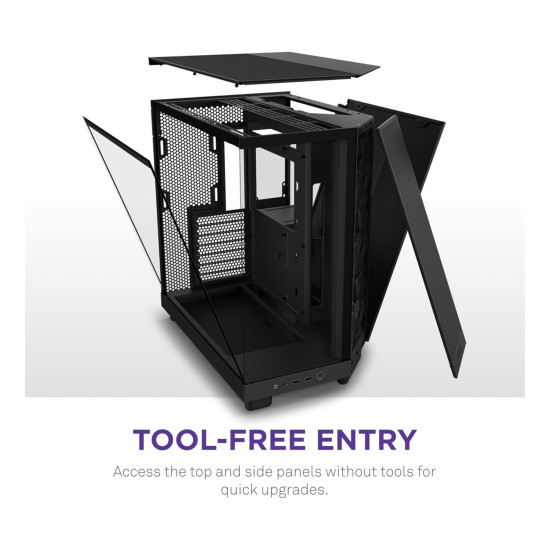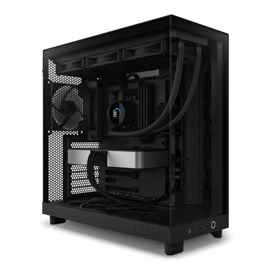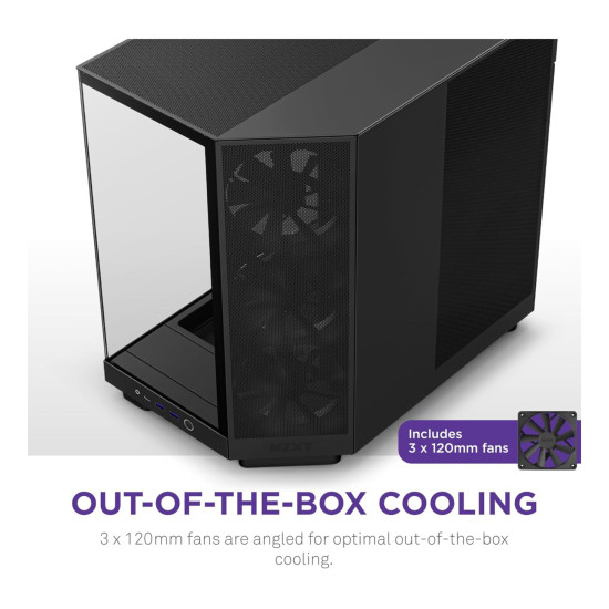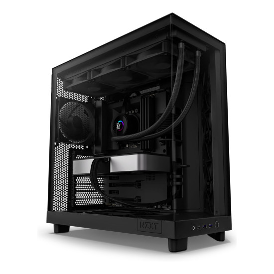 heat-prone components. Supports 2 x 140mm fans beneath the GPU for