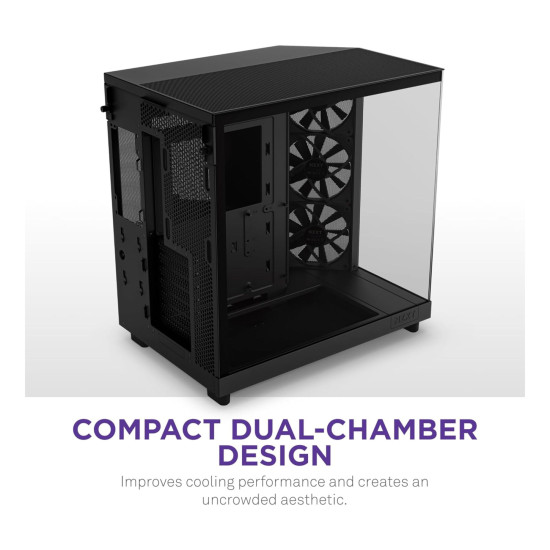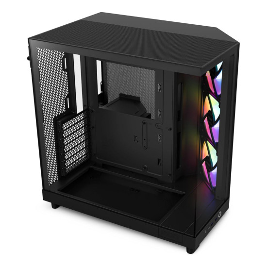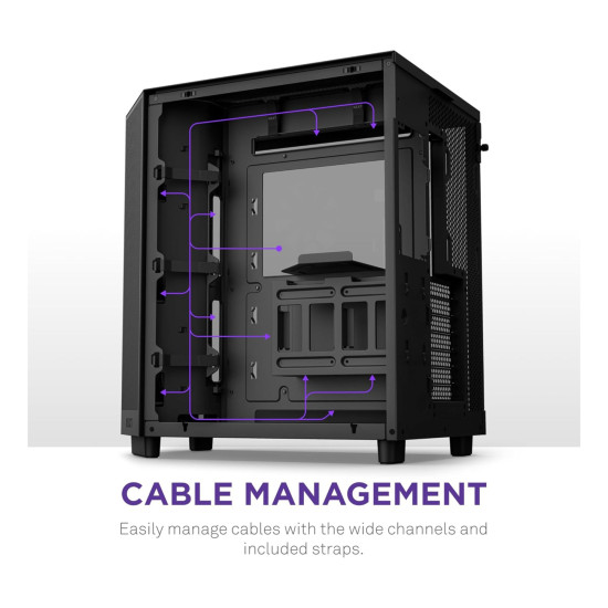 heat-prone components. Supports 2 x 140mm fans beneath the GPU for