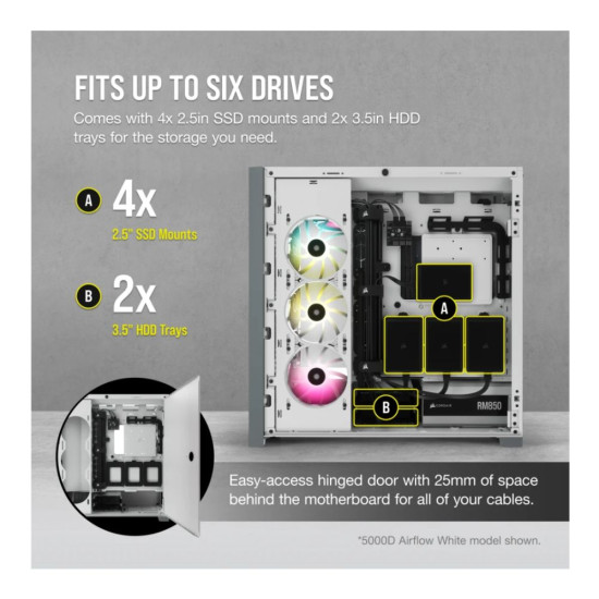 Corsair 5000D Airflow Mid Tower Tempered Glass ATX Gaming PC Case - White