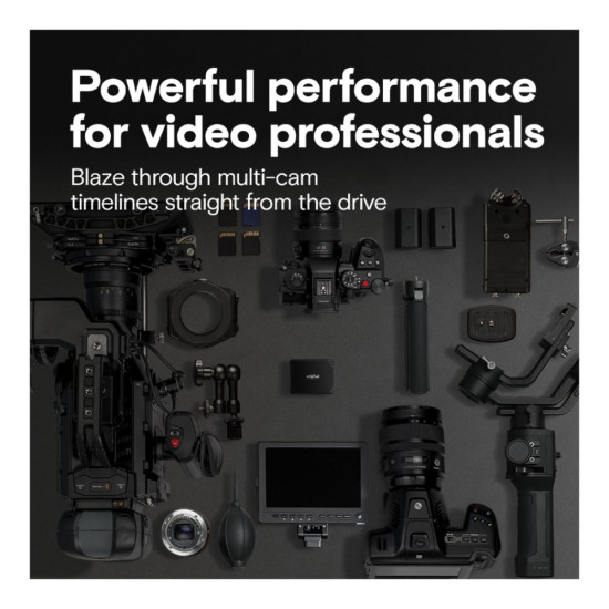 Elevate your video editing experience with the Crucial X10 Pro SSD: the portable drive that packs a palm-sized punch. Blaze through workload without dropping frames and even edit, trim and render directly from the drive. The Crucial X10 Pro is the perfect partner in the studio or in the field, giving you raw performance, lasting durability, and generous capacity.