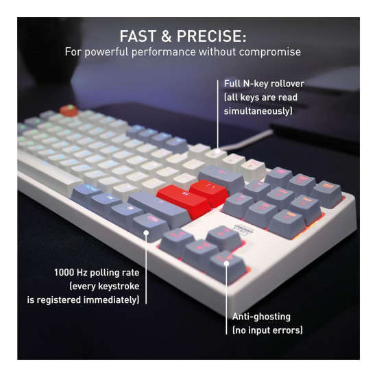 full N-key rollover means zero missed keystrokes no matter how many