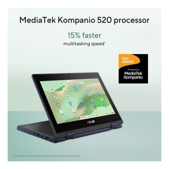 With the MediaTek Kompanio 520 processor, 8GB RAM, and 64GB storage, the ASUS Chromebook Flip is built for the basics. From online research to video calls and streaming, it handles multiple tabs without slowing down.