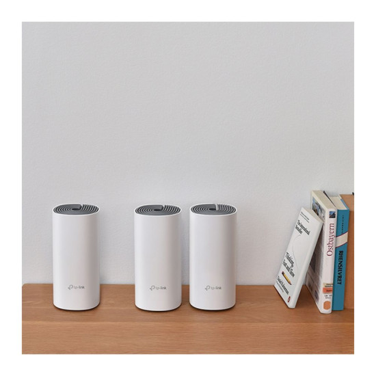 Deco E4 is the simplest way to guarantee a strong Wi-Fi signal in every corner of your home up to 4000 Square feet(3-pack).Wireless connections and optional Ethernet backhaul work together to link Deco units, providing even faster network speeds and truly seamless coverage.Want more coverage? Simply add another Deco.