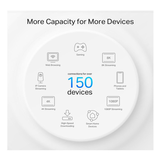 Armed with WiFi 6 technology, Deco whole home mesh WiFi is designed to deliver a huge boost in coverage, speed, and total capacity. Get on the latest mesh WiFi to enjoy the future network that loads faster and connects more.