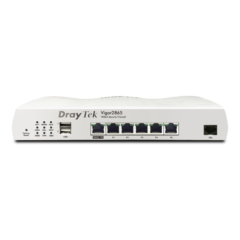 DrayTeks Vigor 2865 series Multi-WAN Firewall VPN routers are ideal for Superfast VDSL Broadband and Ethernet-based FTTP Fibre Broadband. With Gigabit throughput, Quality of Service, VPN client/server, comprehensive Firewall and Content Filtering controls.