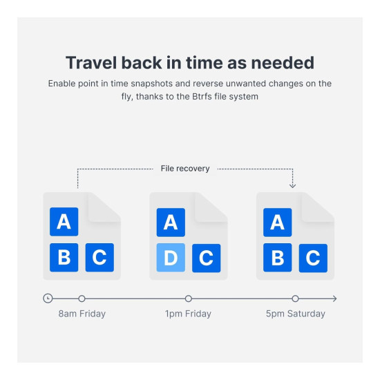 Snapshot Replication provides point-in-time backups that protect your data from accidental deletions or ransomware. These snapshots can be stored off-site, offering a reliable safety net for valuable files.