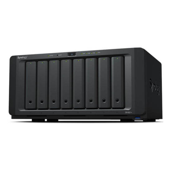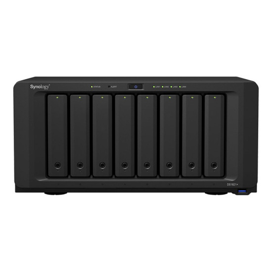 With four Gigabit LAN ports and a PCIe expansion slot, the Synology DS1821+ enables fast data transfer, network bonding, and 10GbE upgrades for high-speed operations