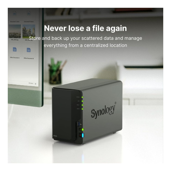 Experience effortless file management with the DS223, a reliable 2-bay NAS designed for private cloud access, intelligent backups, and efficient storage solutions. Whether for home or small business use, enjoy secure data access anytime, anywhere.