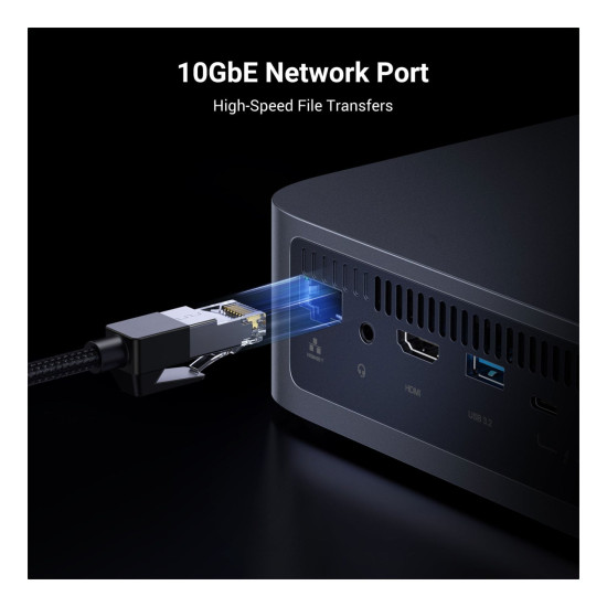 10GbE Network Port: With a 10GbE network port that reaches peak speeds of 1250MB/s, you can download large videos and pictures smoothly like a breeze.