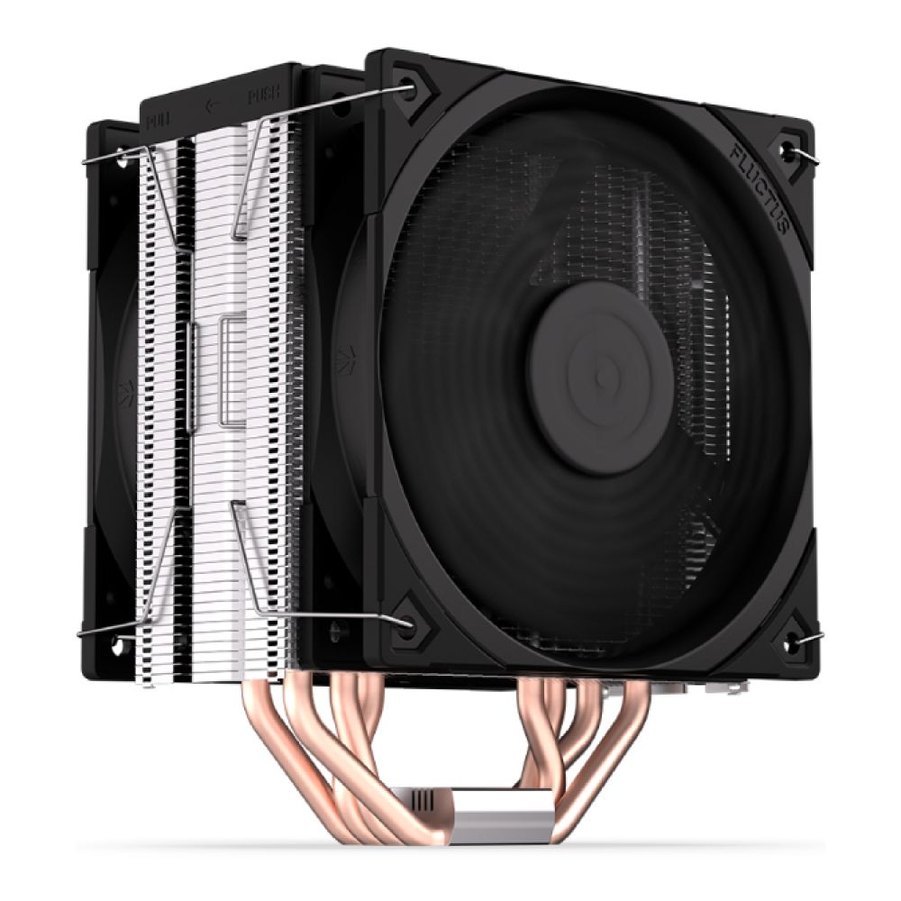The push-pull fan design improves pressure through the heatsink fins, boosting thermal efficiency over standard single-fan setups-perfect for overclockers or power users.
