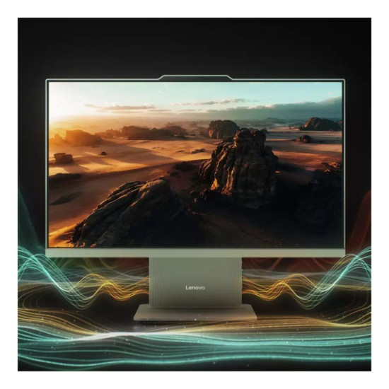 The Lenovo IdeaCentre AIO 24ARR9 features a 5MP webcam with Lenovo Smart Meeting AI, ensuring sharp video calls and Smart Noise Cancelling to reduce background noise and enhance voice clarity.