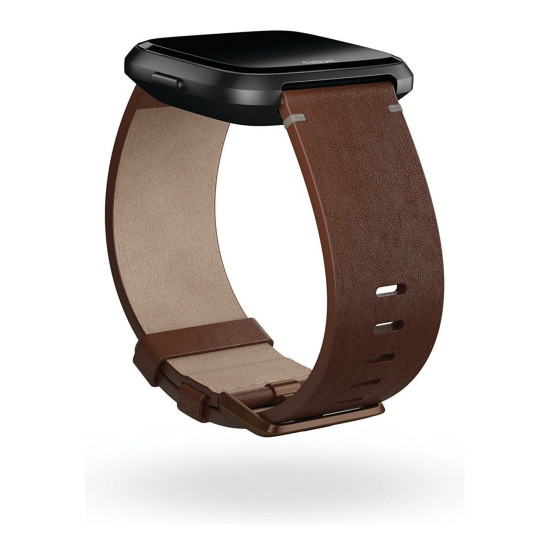 We recommend limited to no contact with moisture to reduce discoloration/damage to the band. Care The Fitbit Versa leather band is not intended for high intensity workouts. If the band gets wet or dirty we recommend using a non-abrasive, lint-free cloth. If needed, you can lightly dampen the cloth with water and let the band air dry. Due to the natural characteristics of genuine leather, each piece will have a distinct variation in color and texture. To maintain the life of your leather band, limit direct exposure to sunlight and moisture, which may cause fading over time. For light-colored leather accessory bands, minimize direct contact with dark-colored clothing, as color transfer may occur. Designed for Fitbit Versa For use with your existing device. Horween leather material Offers durability and comfort.