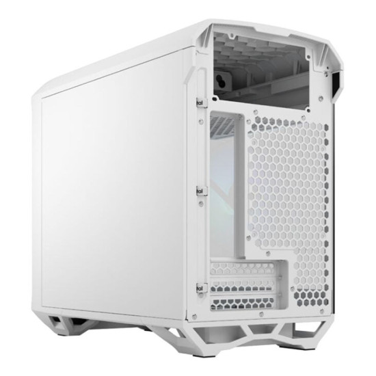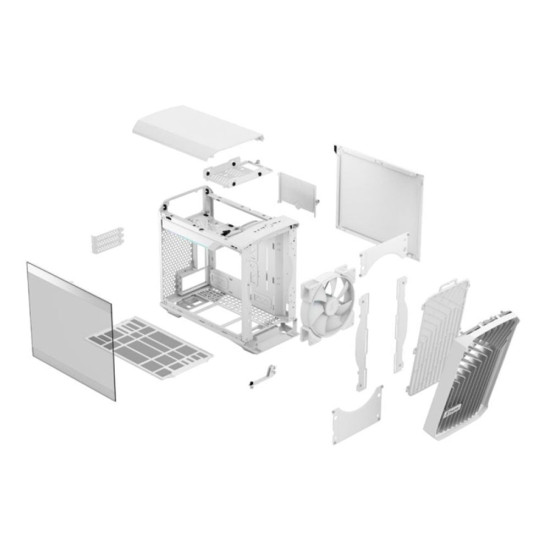 Fractal Design Torrent Nano RGB White TG Clear Tint has an open grille and internal layout which supports a massive included 180 mm fan. See your components through a seamless stunning tempered glass side panel with bolt-free top-latching mechanisms for easy handling. The open interior provides breathing room for components and maximises performance for air and water cooling.