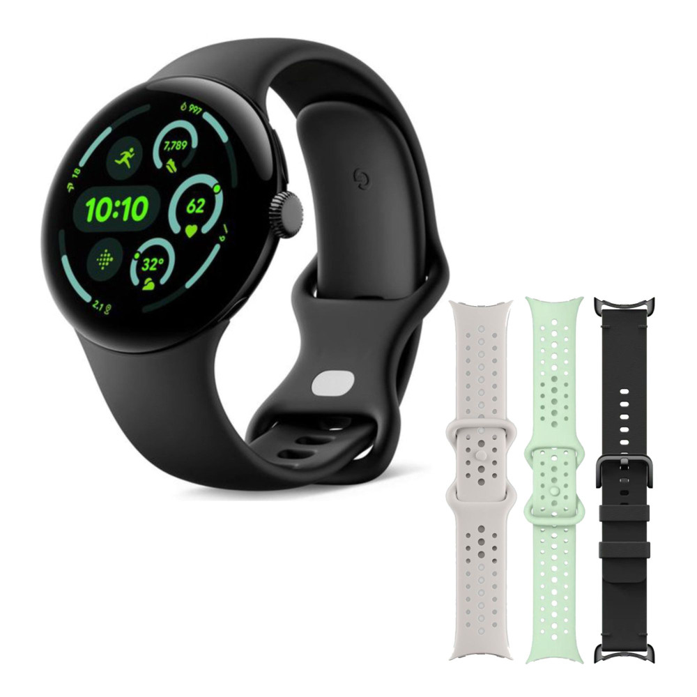 Elevate your everyday style with this Google Pixel Watch 3 bundle, which includes three additional bands the refined Active Sport Band - Porcelain, the refreshing Active Sport Band - Wintergreen, and the sophisticated Crafted Leather Band - Obsidian.