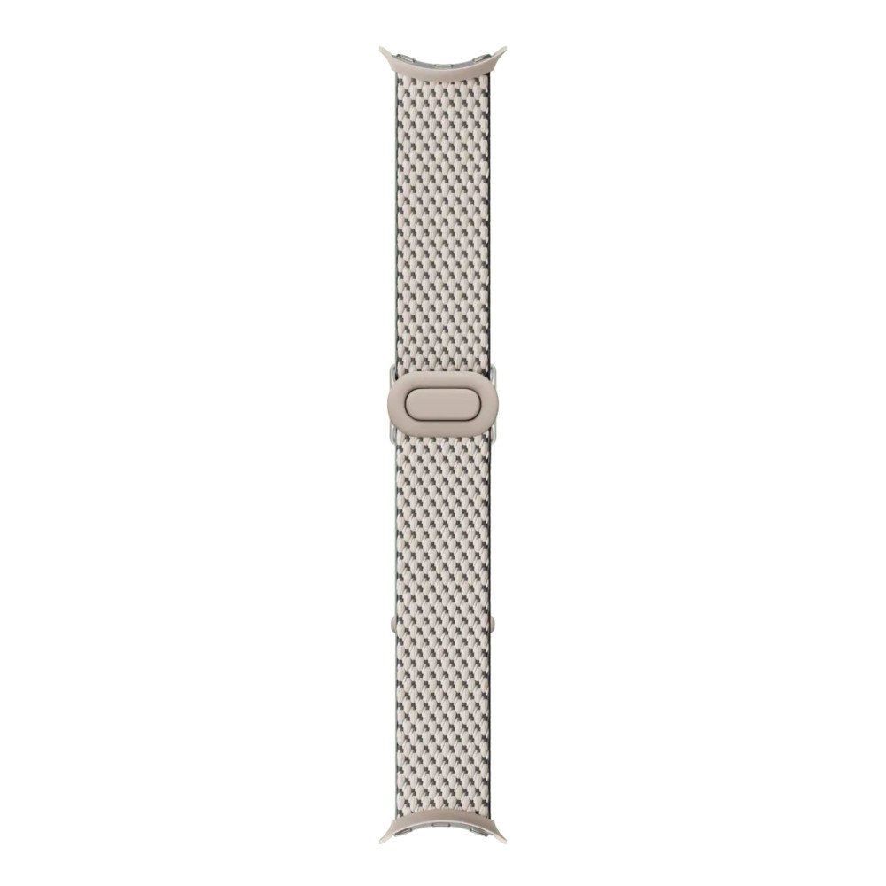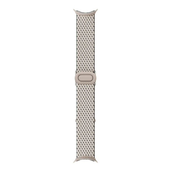 The Google woven watch band is designed for smart watches, providing a comfortable and adjustable fit for various wrist sizes. With compatibility for 41 mm cases, this band caters to users seeking both functionality and style. Made from durable materials like plastic, stainless steel, and recycled polyester yarn, this watch band combines sustainability with elegance. The adjustable clasp ensures a secure fit, making it an ideal accessory for everyday wear and special occasions.