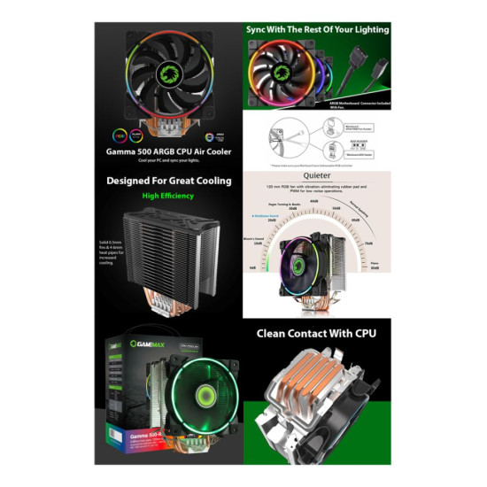 GameMax Gamma 500 Rainbow Aura Sync 4-Pin ARGB CPU Cooler