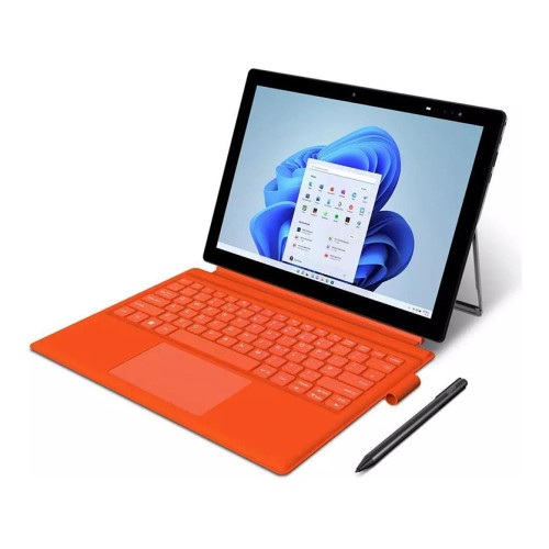 Weighing just 1.1kg, this vibrant Mango Orange device combines portability with striking style. The detachable keyboard effortlessly transforms it into a 2-in-1 laptop and tablet for ultimate versatility. A built-in fingerprint reader ensures your data stays secure with an added physical layer of protection, making it both functional and safe.