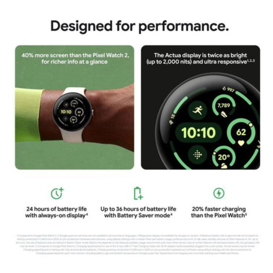 The Google Pixel Watch 3 combines advanced fitness tracking, seamless communication, and smart technology in a sleek, round design. Equipped with a vibrant LTPO AMOLED display protected by Corning Gorilla Glass 5, this smartwatch delivers clear visuals and easy navigation. Users can enjoy features such as heart rate variability tracking, blood oxygen saturation monitoring, and an ambient light sensor for an enriched health experience. The watch includes safety features like Fall detection and Emergency SOS for peace of mind while being active.
