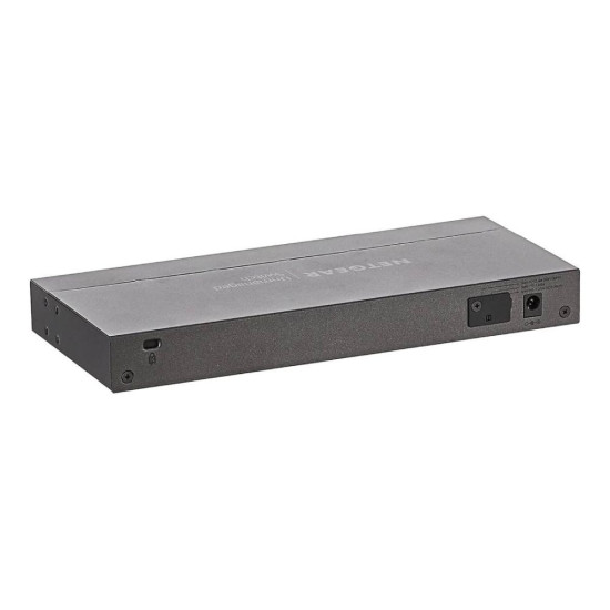 Netgear GS108PP. Switch type: Unmanaged. Basic switching RJ-45 Ethernet ports type: Gigabit Ethernet (10/100/1000), Basic switching RJ-45 Ethernet ports quantity: 8. Full duplex. MAC address table: 4000 entries, Switching capacity: 16 Gbit/s. Networking standards: IEEE 802.1p,IEEE 802.3af,IEEE 802.3at,IEEE 802.3az,IEEE 802.3x. DC input voltage: 54 V. Power over Ethernet (PoE). Wall mountable, Rack mounting