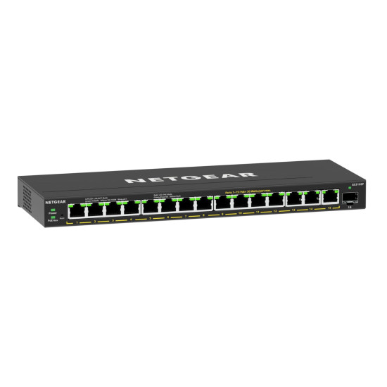 The NETGEAR 16-Port PoE+ Gigabit Ethernet Plus Switch delivers essential business networking features and powers PoE+ devices like VoIP phones IP cameras and more.