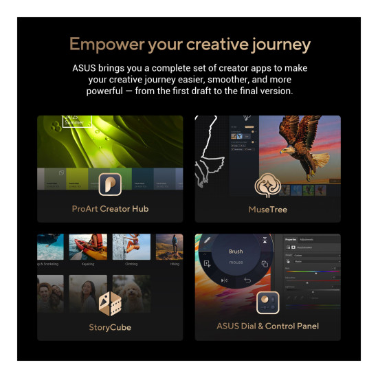 4K OLED clarity ensures accurate colour reproduction, crucial for professional artwork and ProArt-grade design.
