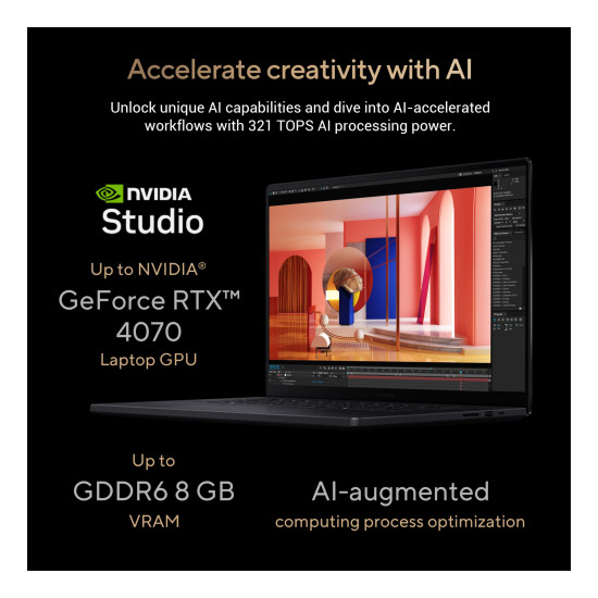 Powered by the AMD Ryzen AI 9 HX 370 with 32GB RAM and a rapid 2TB SSD, the H7606WI-ME045W handles complex creative projects effortlessly. The NVIDIA GeForce RTX 4070 supports AI rendering and real-time previews, a hallmark of performance in RTX 4070 laptops.