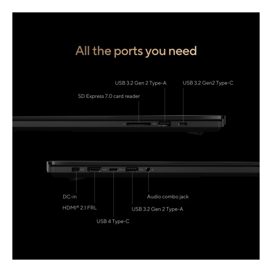 Multiple ports including HDMI, USB-C, and SD card reader, plus Wi-Fi 7, give the H7606WI-ME045W seamless connectivity. Whether managing multi-monitor setups or cloud-based collaboration, this laptop is built for uninterrupted workflows.