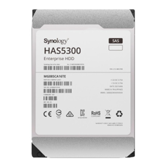 Engineered for top performance and reliability, the 12TB HAS5300 SAS-3 3.5" Internal Enterprise HDD from Synology has been designed to integrate with DSM and Synology hardware to delive improved performance in enterprise deployments. The HAS5300 has passed 200,000 hours of testing on Synology hardware, has a Mean Time to Failure (MTTF) rating of 2.5 million hours, and a yearly workload rating of 550TB. Also featured is a storage capacity of 12TB, a SAS-3 12 Gb/s interface, a 256MB cache, and a rotational speed of 7200 rpm, all of which help to ensure uninterrupted data transfers with sustained speeds of up to 254 MB/s.