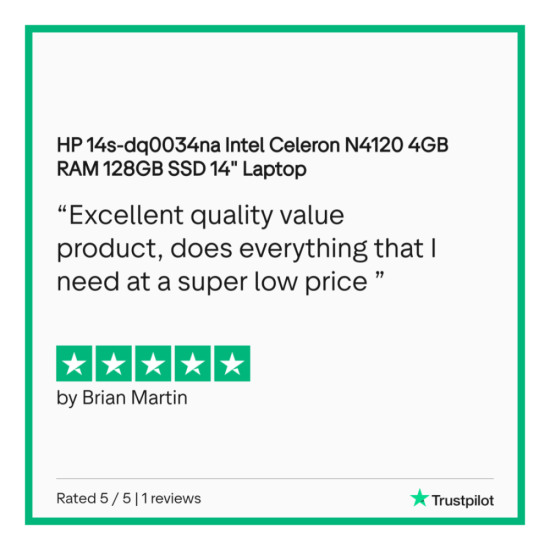 The HP 14s-dq0034na is equipped with an Intel® Celeron® N4120 processor and 4GB of DDR4 RAM, ensuring that you can multitask effortlessly. The 128GB SSD offers fast boot times and quick access to your files, making this laptop perfect for everyday computing needs.