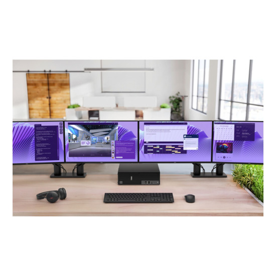 Thanks to its slim and compact design, this desktop offers versatile placement options. Whether you prefer it on your desk, mounted behind a monitor, or tucked away in a cabinet, the system adapts to your space and workflow. Its built to fit your environment without compromising on power or accessibility.