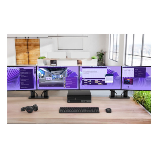 Thanks to its slim and compact design, this desktop offers versatile placement options. Whether you prefer it on your desk, mounted behind a monitor, or tucked away in a cabinet, the system adapts to your space and workflow. Its built to fit your environment without compromising on power or accessibility.