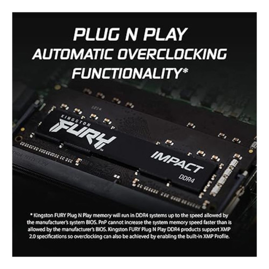 XMP-ready in capacities of 8GB, Plug N Play FURY Impact DDR4