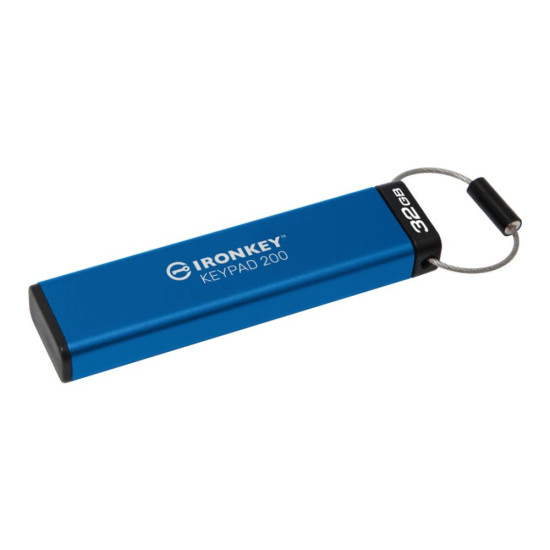 Kingston Technology IronKey Keypad 200 AES Encrypted 32GB USB 3.2 Flash Drive - Blue
