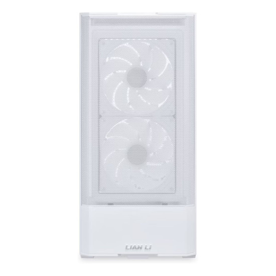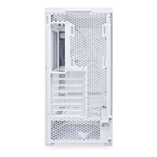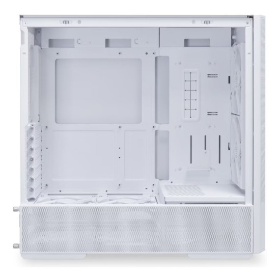 The Lian Li Lancool 207 can deliver this outstanding cooling potential out of the box, as it includes highly porous mesh on the front and top panels, as well as the side of the PSU chamber. This allows the Lancool 207 ample access to fresh air. To facilitate airflow into the chassis, there are four pre-installed high-performance cooling fans. At the front of the case are two 140mm 30mm thick fans, which deliver 109.3CFM of airflow at a static pressure of 3.3mmH2O. In addition to this, they feature ARGB lighting, including a captivating infinity mirror at the centre for stunning effect. The second set of fans are located on top of the PSU chamber. Both fans measure 120mm x 120mm x 25mm (HxWxD) and utilise an 11-blade design. This enables them to deliver 71.1CFM of airflow, with a static pressure of 1.99mmH2O. They are perfectly positioned to channel cool air directly into your GPU, ensuring it can maintain optimum thermals even during the most epic battles.