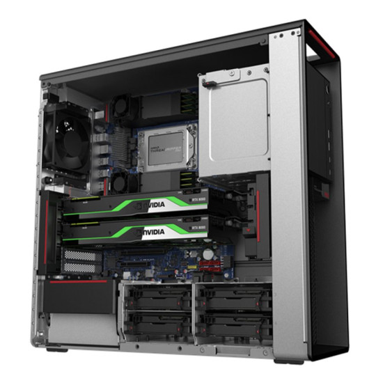 An air-cooled thermal system helps ensure the ThinkStation P620 tower runs well in any location, allowing the CPUs and GPUs to stay cool while running at peak performance until the job is done. Whats more, tool-less accessibility to the chassis enables easy upgrades if needed.
