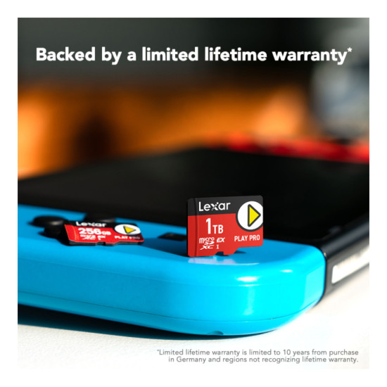 The PLAY PRO microSDXC Express Card is backwards-compatible with UHS-I and UHS-II host devices (at UHS-I speeds) so you can use it with your current handheld gaming consoles and its ideal for the Nintendo Switch 2.