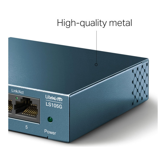 The interior components of LS105G are protected by high-quality metal casing to ensure a long product life. Having passed an array of stringent reliability tests, LS105G delivers switching performance you can depend on. Its compact size makes it ideal for deployment on desktops or work benches.
