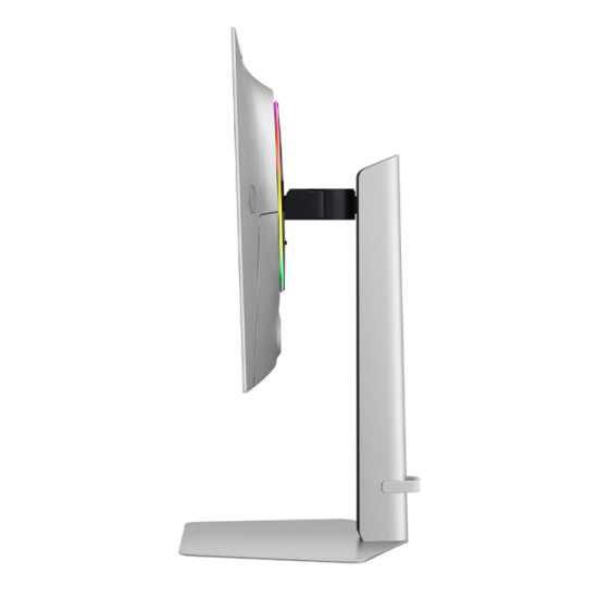 The sleek metal design and ultra-thin profile enhance the aesthetic appeal. The ergonomic stand allows for easy adjustments, including tilt, swivel, and height adjustments, to find your perfect viewing position for extended gaming sessions.