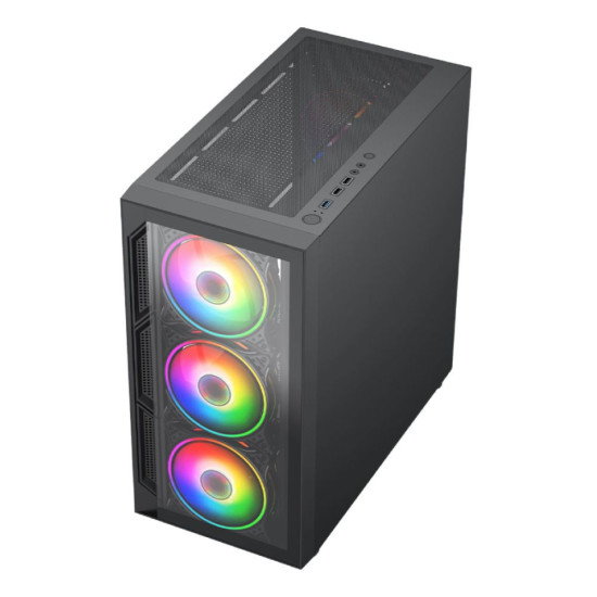 Meet the Vida Lucid Case (LUCID-BLK) where gaming meets glamour in a Micro ATX and Mini ITX powerhouse! This case is designed with gamers in mind, featuring a stunning tempered glass front and left panel that reveals a mesmerising world of LED lighting. Connect effortlessly with USB 3.0 and USB 2.0 ports, and immerse yourself in the HD audio and mic experience. The Lucid case takes your gaming setup to the next level with a dynamic cooling system, including three 120mm ARGB fans in the front and one in the rear, ensuring optimal airflow for intense gaming sessions. With a sleek black design, the Lucid case adds a touch of elegance to your gaming haven. Backed by a 1-year warranty, the Lucid Case is where style meets substance, creating a visually immersive experience for passionate gamers.