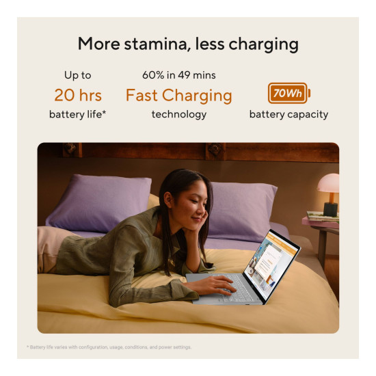 The 14-inch WUXGA display provides sharp visuals with a vibrant colour palette. Paired with high-quality audio, it ensures an immersive entertainment experience.