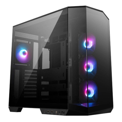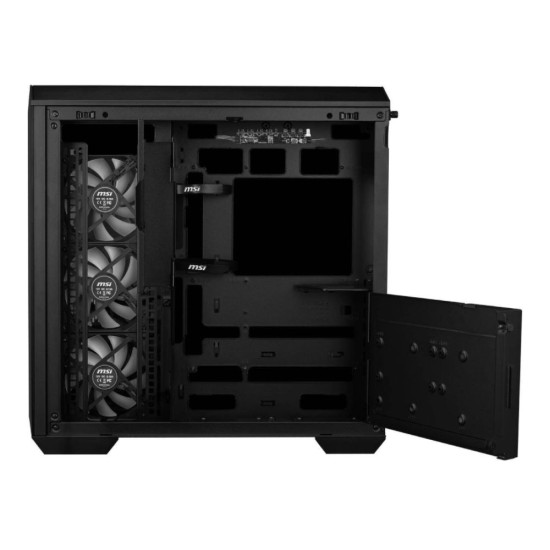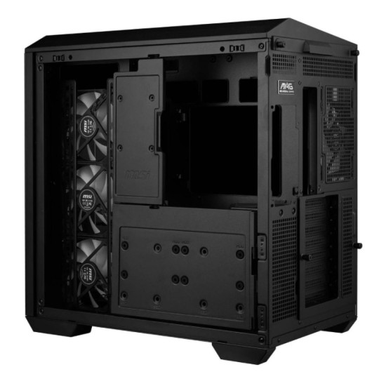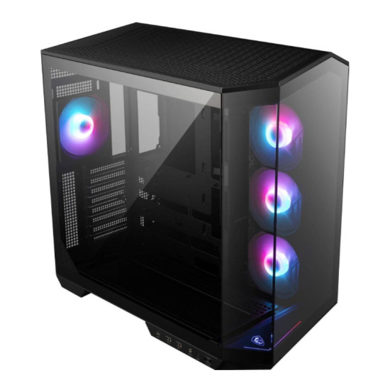 The MAG PANO 100R PZ WHITE comes with a 270-degree tempered glass panel and is compatible with two different sizes of Back-connect motherboards, adding to the cleanliness of your PC build while enhancing its overall aesthetics and organization. MAG PANO 100R PZ WHITE offers spectacular ambient illumination with 3 x 120 mm Reverse-blade ARGB PWM intake fans and 1 x 120 mm ARGB PWM exhaust fan pre-installed. This PC case offers a vertical graphics card installation bracket.