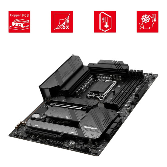 Powered by the Intel Z790 chipset, the MAG Z790 TOMAHAWK WIFI delivers cutting-edge performance for Intels latest CPUs. With PCIe 5.0 support, DDR5 memory up to 192GB, and four M.2 Gen4 slots, it ensures ultra-fast data transfer and system responsiveness. The advanced VRM design provides stable power delivery, even under heavy loads, while AI cooling optimization keeps thermals in check during gaming marathons. MSIs robust BIOS and tuning tools make overclocking and performance adjustments effortless, giving you total control over your systems capabilities.