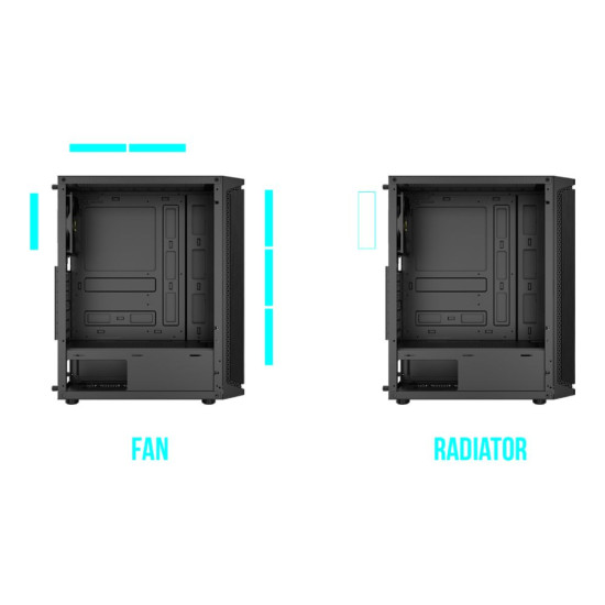 The compact mid-tower case supports the installation of GPU lengths up to 300mm and has a PSU shroud design with ample room for cable management optimization.