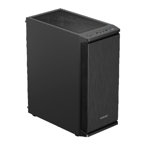 The case boasts a sleek front panel with a brushed finish and is perforated on the sides for operational airflow. The design offers a professional and personalized look and features noise-dampening vents and a built-in fan to provide both aesthetics and functionality.